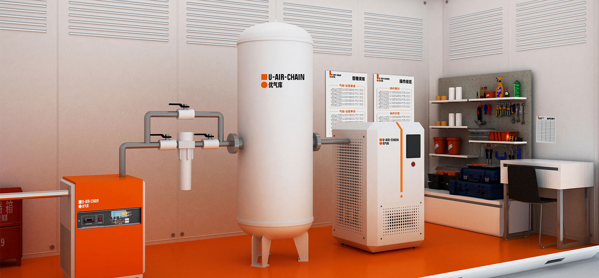 U-AIR CHAIN (優氣庫)是一家立足于螺桿空氣壓縮機、工藝壓縮機研發、設計、生產和銷售、服務的現代化壓縮機智能制造公司,同時也是一家智慧空氣動力站房節能、大數據管理的科技公司。